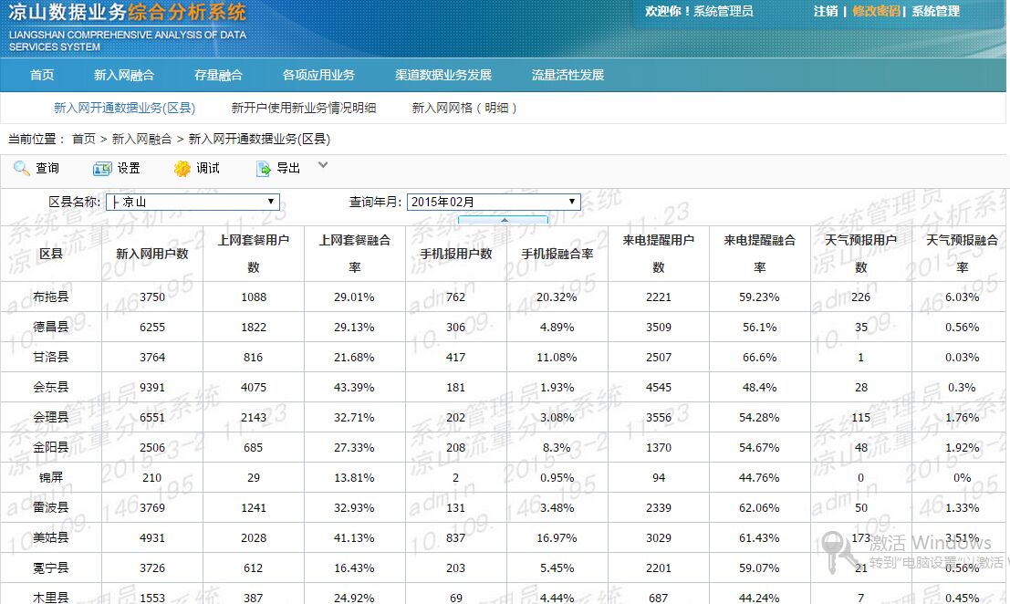 3)通过对目前关注的数据业务发展进行追踪分析,对不同区域、不同层次的发展、新增、到达、覆盖率等进行数据支撑,等建立一套完整的、真实、准确流量信息的基础数据。