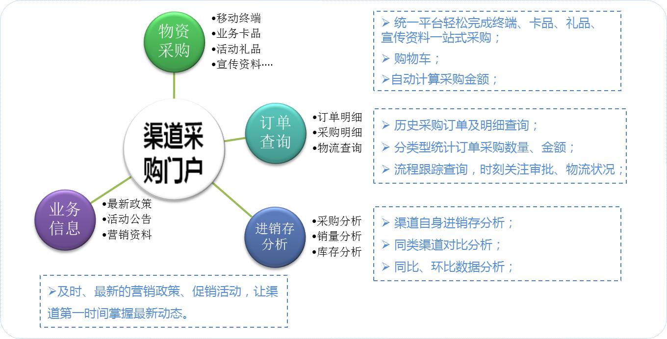 本平台建设成功后,渠道在移动公司申购或申领物资的过程,从原来的线下方式,转换为类似在电子商务网站购物的方式:在系统中下单,可以跟踪查询订单执行状态。