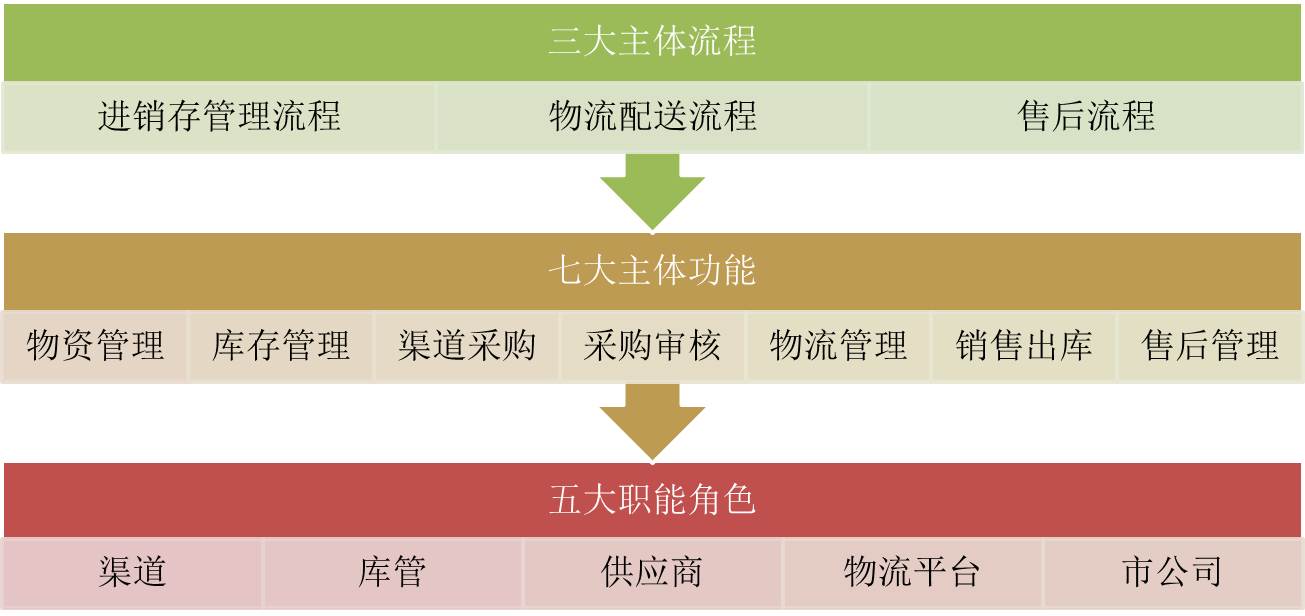 系统容纳了三大主体流程、七大主体功能、五大职能角色: